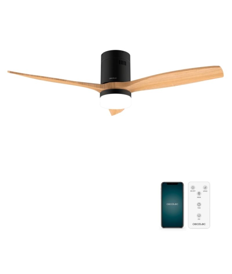 Cecotec EnergySilence Aero 5600 Aqua Black and WhiteWood Connected Ventilador de Techo con 3 Aspas y Luz LED - 40W - Diametro 52